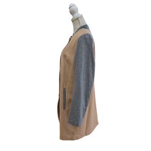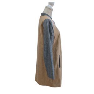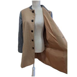 Women Lady Long Woolen Coat Autumn Long Sleeve Contrast Color Patchwork Size L
