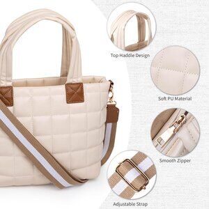 Women Large Quilted Crossbody Bag PU Leather Adjustable Strap Stylish Tote