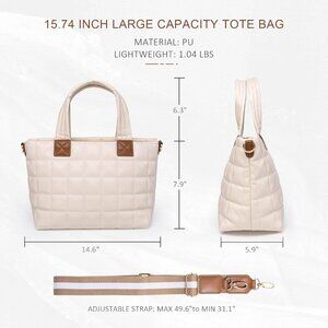 Features: This trendy quilted bubble design bag is lightweight but big on capacity. It has a soft, PU leather feel with a sturdy zipper closure and a polyester lining. The adjustable shoulder strap (31.1" to 49.6") offers multiple ways to carry — as a crossbody or handheld. Perfect for work, shopping, travel, or everyday style.