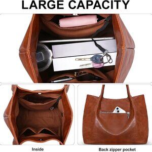 Women Large Vegan Leather Tote Bag 16L Big Handbag for Work Travel