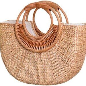 Women Large Woven Rattan Straw Tote Bag Summer Beach Crossbody Purse