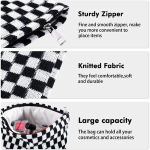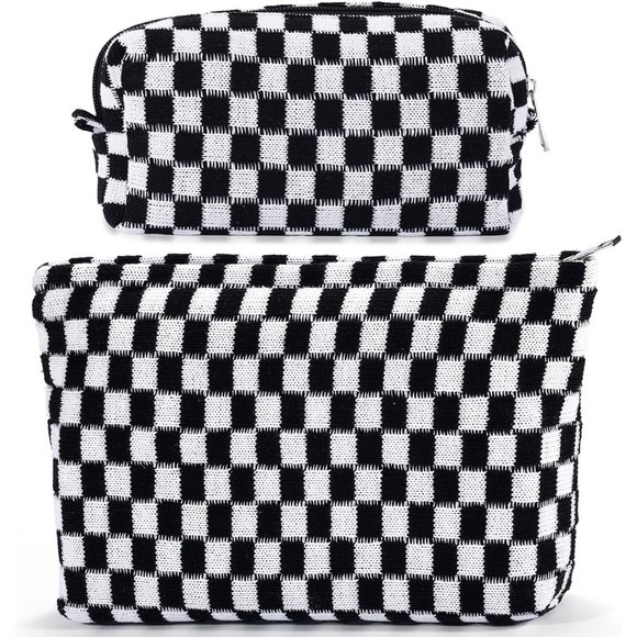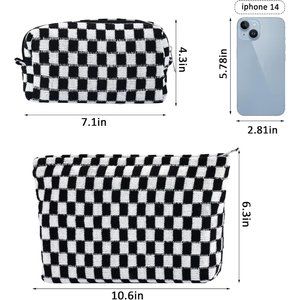 The checkered makeup bag set measures 11×6 inches and 7×4 inches, easy to carry. Our checkered makeup bag is made of soft knitted fabric, easy to clean. This checked makeup bag can also hold small items such as makeup, skincare products, lipstick, eye shadow, eyebrow brush, etc.