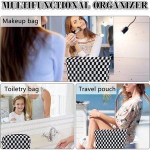 The checkered cosmetic bag can be used as a toiletry bag or storage bag. Daily makeup makeup, skin care samples, mobile phone can be put in the bag, and can also be used as a purse. The checkered makeup bag can be used while traveling, since makeup bags are lightweight and don't take up a lot of space in your suitcase.