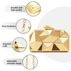 Perfect Size:7.1 x1.4x 3.9in(18 x3.5 x10cm),geometric purses for women evening is enough to hold your essentials,such as mobile phone,keys,cards,lipstick,small mirror and other small items.Small clutch purse comes with detachable long chain 120cm /46.8in and short chain 40cm /15.6in, gold clutch purse or silver evening bag is easy to match your shoes or fascinators