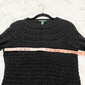 Women Lauren Ralph Lauren Pointelle Crewneck Sweater Pullover in Black Medium