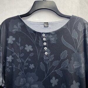 Women Layered 3/4 Sleeve Round Button Neck Kaftan Maxi Dress XL Black Floral