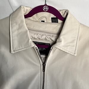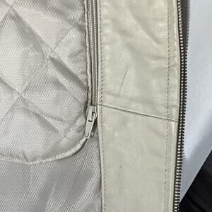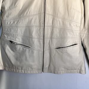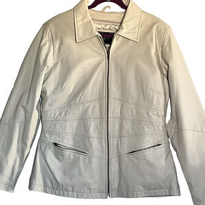 Women Leather Jacket Cream Genuine Leather Moto Zip In/Out Lining Pockets SZ L