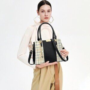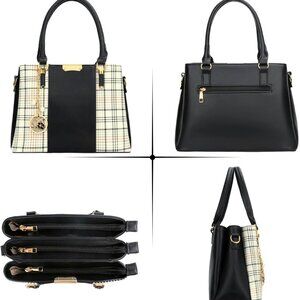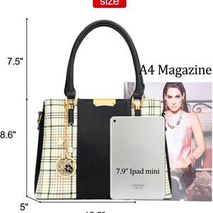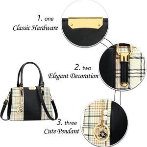 Features: This medium-sized purse boasts three main compartments, making it perfect for organizing all your essentials plus extras. Inside, there are two slot pockets, and there's a zippered back pocket for extra security. The light polyester lining helps you find things quickly, while the vegan PU leather exterior is eco-friendly and durable. The classic gold hardware adds a touch of elegance.