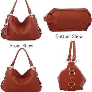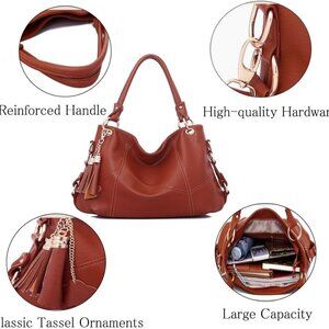 Women Leather Tote Bag Large Shoulder Satchel Purse with Tassel and Adjustable S
