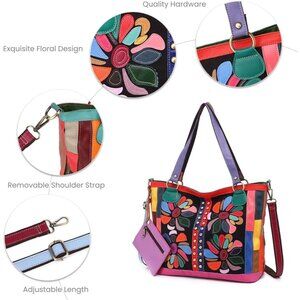 Women Leather Tote Bag Large with Zipper Floral Patchwork — A bold, vibrant accessory for every day.