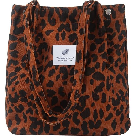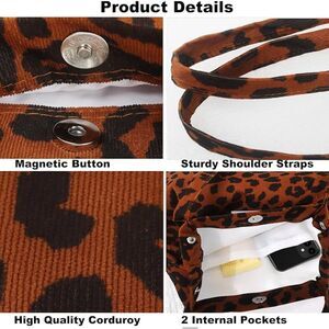 Women Leopard Imported Corduroy Canvas Shoulder Handy Inner Pocket Tote Bag