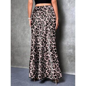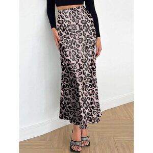Women Leopard Maxi Dressy Casual Zipped High Waisted Silk Elegant Long Skirt