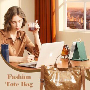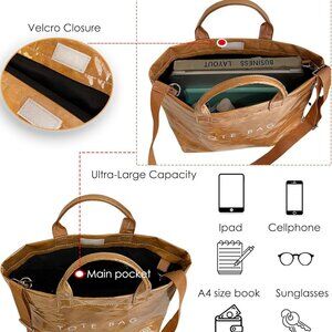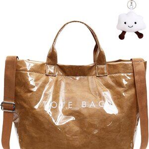 Features: Spacious design with a unique double-layer construction featuring a textured kraft paper inner layer and a waterproof glossy PVC outer layer. Includes 1 zippered pocket and 1 internal compartment—perfect for carrying your laptop, phone, wallet, makeup, and more. Features a detachable, adjustable strap and comfortable handles for multiple wear options. Easy to clean with a quick wipe.