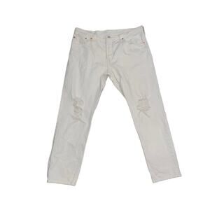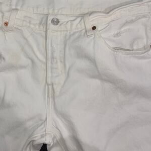 Women Levi's 501 Button Fly White Distress Denim Jeans Pants Size 31x32