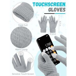 Women Light Gray Knit Beanie Hat, Gloves, Scarf & Ear Warmer Set - Winter