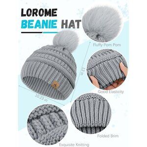 Novelty Design - With LOROME winter hat set , you can brave the cold weather in style. Designed for both fashion and functionality, this winter beanie set features knitting tech, furry pom pom, fine LOROME label, dual layered and flanging brim design, thick cuff touchscreen gloves with touchscreen design on thumb and index fingers.