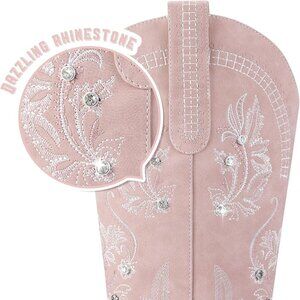 Retro and Fashion Lumeheel women's cowgirl boots epitomize the flawless fusion of vintage western and modern fashion, ensuring you stride with confidence and charisma wherever your journey takes you. Wide calf cowboy boots for women boast timeless embroidery designs, sparkling rhinestones, and a classic pointed toe, elevating your style with a captivating blend of vintage charm and modern allure.