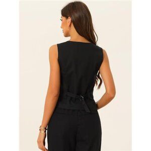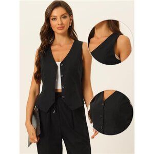 This vest for women is made up of several design points: Cozy Fabric, Adjustable Back, Button Down, V-Neck, Sleeveless, Crop Length