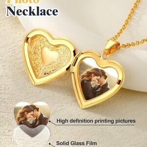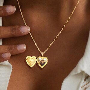 Women Locket Necklace 14K Gold Photo Lockets Heart Love 20 Inch Chain Gift