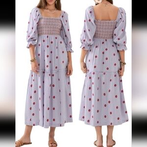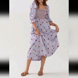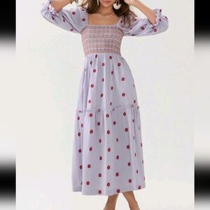 Women Long Dress, Long Sleeve Dress Square Neck Embroidery Flower Loose Swing Dr