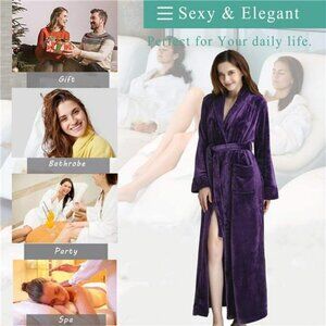 -Get Super Plush Shawl Collar Bathrobe. Women's plush bathrobe is so luxurious with stronger fabric and superior stitching bathrobes. The long robes for women are two pockets in the front for placing items such as remote control or phones. Womens sleepwear did wrap all around you, also there is a outer belt to keep it in place. It does have a hook in back for hanging. Make it more easy and comfortable when you at home