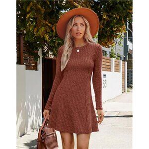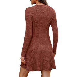 Women Long Sleeve Crew Neck Sweater Dress Burnt