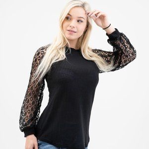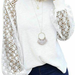 · Women’s top with lace balloon long sleeves, round neck, loose-fitting, elegant blouses.