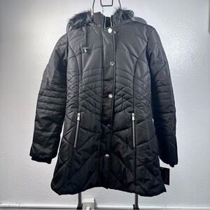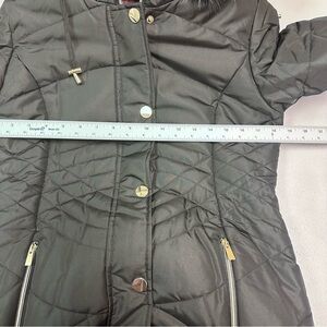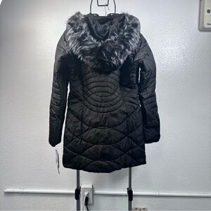Women Longer Length Plush Lined Quilted Winter Puffer Coat Zip-Off Fur Trim Hood
