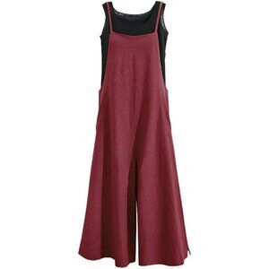 Women Loose Long Bib Pants Wide Leg Jumpsuits Red