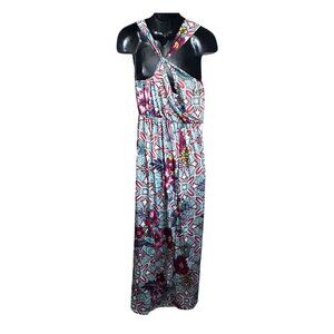 This vibrant tropical print maxi sundress features a stylish razor back design, perfect for warm weather and casual outings. Comfortable and chic, it's a must-have addition to your summer wardrobe.