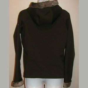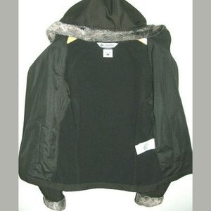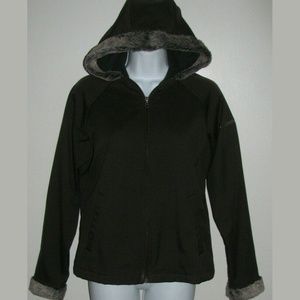 Women M Columbia Sport Knit Track Hoodie Jacket Faux Silk Fur Trim Fleece Lining