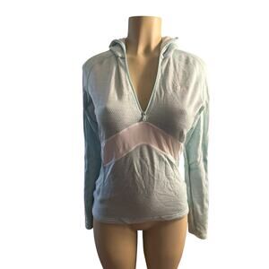 Women M Helly Hansen H1 Pro Lifa 1/2 Zip Baselayer Merino Wool Blue Hooded