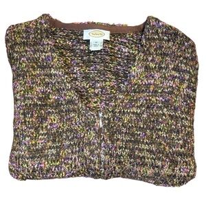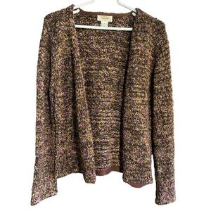 Women M TALBOT's Chunky Cardigan Sweater Brown Purple Colorful
