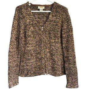 Women M TALBOT's Chunky Cardigan Sweater Brown Purple Colorful zipper Vtg