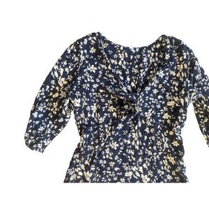 Women M UO Urban Outfitters Gloria Navy Cream Floral 3/4 Slv Mini Tea Dress