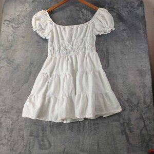 Women M White Peasant Milkmaid Babydoll Puffy sleeves Ren Fair Cottagecore Dress