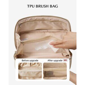Quality Materials: Crafted from smooth, waterproof PU leather that’s easy to clean, with a durable polyester lining. The makeup brush compartment is made from clear, waterproof TPU to keep brushes neatly stored and visible.