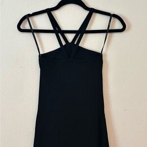 Chic and timeless black strappy midi dress by MINKPINK, size XS. Features a sleek silhouette with a halter-style neckline and thin straps that create a modern, flattering look. The midi length makes it versatile—perfect for cocktail parties, date nights, or dressing up with heels for special occasions.