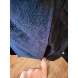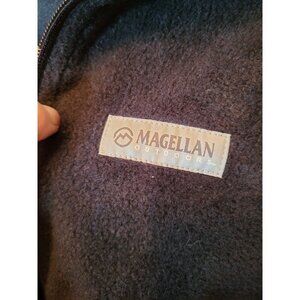 Black fleece jacket by Magellan Outdoors is made from a thick polar fleece to keep you warm through your morning walks. Jacket features a funnel neck, zip front, and interior as well as exterior pockets. Jacket fits close to the body to keep in warmth and is in great shape.