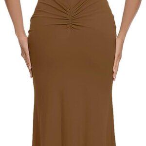 Features: This fitted maxi dress has a beautiful fishtail hem and a classic crew neck, giving you a stunning mermaid silhouette. The ruching detail cleverly hides the belly, making your figure look more curvy and effortlessly chic. Made from ultra-soft, stretchy cotton-spandex fabric, it offers all-day comfort and a flattering hourglass shape.