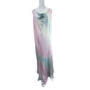 Women Maxi Pastel Sun Dress Sz 18 Beach Wedding Slimming Slit Coquette Silky