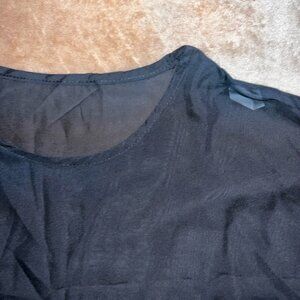 Women Medium Black Sheer Chiffon White Pom Tassle Swim Coverup (Q)