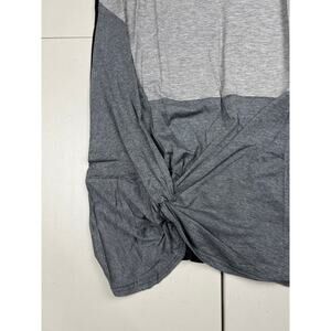 Womens Color Block Twist Knot T-shirt Mini Dresses Casual Short Sleeve Tunic Dress Summer Dress, Black Gray, Size Medium
