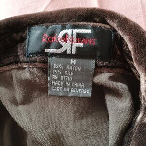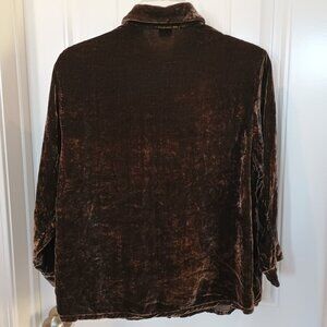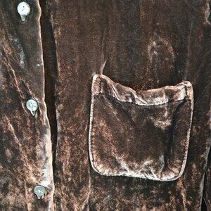 Women Medium Velvet Blouse Pocket Button L/S Brown Silk Blend Soft Quiet Luxury