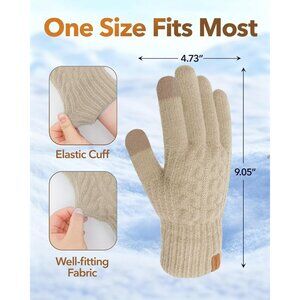 ⚡Women & Men Malt Beige Winter Touch Screen Warm Thick Fleece Lined Knit Gloves