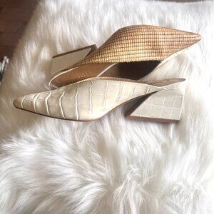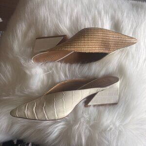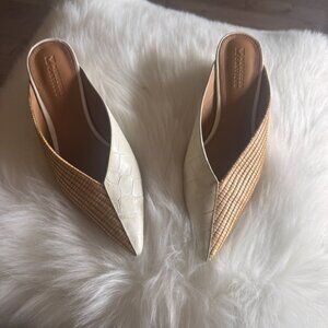Women Mercedes Castillo Raffia Mules white /tan sz 7