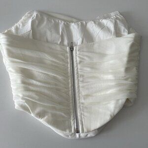 Women Mesh Bustier Strapless Open Back Crop Top Zip Back Boned Overbust Corset