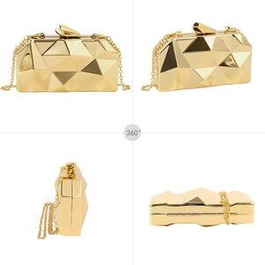 Women Metal Clutch Purse Small Evening Bag Geometric Gold with Chain