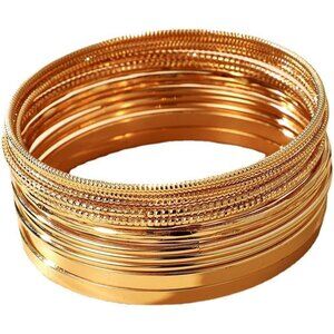Women Metal Stackable Boho Indian Gold Bangles Bracelet Stack Non Tarnish