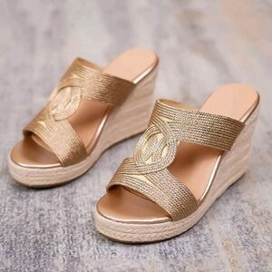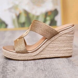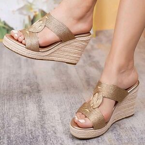 Women Metallic Espadrille Wedge Slide Sandals, Vacation Summer Sandals